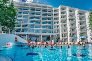 Maritim Hotel Paradise Blue Albena je moderní a luxusní hotel situovaný přímo v centru rodinného letoviska Albena. Nachází se přímo u pláže, pouhý 1 km od aquaparku a zhruba 15 km od města Balčik. Letiště Varna je vzdálené asi 40 km. V blízkosti hotelu najdete obchody, restaurace a bary, které poskytují dostatek možností pro zábavu a nákupy.
