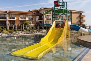Hotel nabízí širokou škálu vybavení, včetně vstupní haly s recepcí, hlavní hotelové restaurace a dvou tematických restaurací zaměřených na bulharskou a italskou kuchyni. K dispozici jsou také bar, snack bar, minimarket, kadeřnictví, obchod se suvenýry a konferenční místnost. Pro relaxaci hostů je připraven velký venkovní sladkovodní bazén s integrovaným brouzdalištěm, krytý bazén a pro děti je k dispozici miniklub a dětské hřiště.