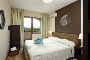 Ubytování je nabízeno v dvoulůžkových pokojích s možností přistýlek, apartmánech s 1 nebo 2 ložnicemi. Všechny jednotky jsou vybaveny vlastní koupelnou, individuální klimatizací, SAT/TV, telefonem, chladničkou, setem na přípravu kávy a čaje, a trezorem (za poplatek). Pokoje mají balkon s výhledem do okolí nebo částečným výhledem na moře za příplatek.