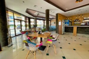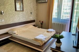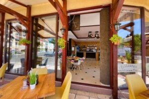 Hotel Amfibia je ideálně umístěn v centru letoviska Primorsko, v severní části, a nachází se v blízkosti obou hlavních pláží. Severní pláž je vzdálená přibližně 350 metrů a jižní pláž asi 450 metrů od hotelu. Hotel nabízí svým hostům pohodlné a příjemné ubytování s přátelskou atmosférou a výborným poměrem mezi kvalitou a cenou, což ho činí oblíbenou volbou pro návštěvníky této oblasti.