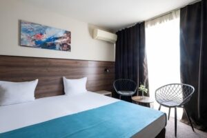 Hotel Belitsa v letovisku Primorsko je ideálním místem pro dovolenou díky své výhodné poloze a modernímu vybavení. Nachází se v klidné části města, jen 200 metrů od Severní pláže a 250 metrů od rušného centra, kde hosté najdou široké možnosti nákupů a zábavy. V blízkosti hotelu jsou restaurace, bary, obchody a různé atrakce včetně aquaparku Planet. Mezinárodní letiště Burgas je vzdáleno 60 km, což zajišťuje snadný přístup k hotelu.