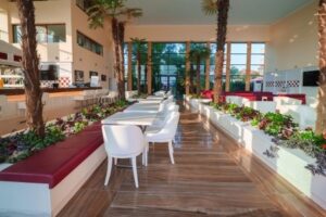 Stravování je možné ve formě All Inclusive, které zahrnuje snídaně, obědy a večeře formou bufetu, lehké občerstvení během dne a neomezené množství nealkoholických nápojů a místních alkoholických nápojů v barech hotelu během jejich otevírací doby od 10:00 do 23:00 hodin.