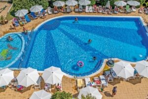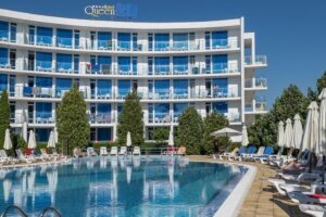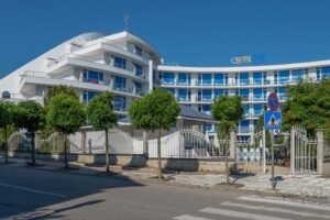 Queen Nelly je nový a moderní hotel ideálně umístěný mezi pláží a centrem letoviska, nabízející hostům pohodlný pobyt s bohatými možnostmi zábavy a nákupů. V blízkosti hotelu se nachází atraktivní aquapark, což zvyšuje atraktivitu místa pro rodiny s dětmi a milovníky vodních radovánek. Hotel Queen Nelly je vzdálen přibližně 650 metrů od centra letoviska a pouze zhruba 200 metrů od severní pláže, což poskytuje snadný přístup k moři a slunečným dnům.