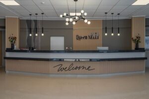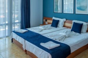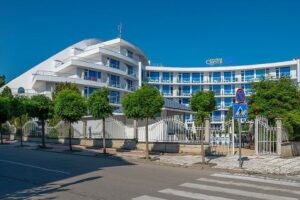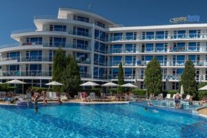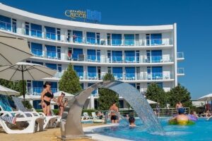 Queen Nelly je nový a moderní hotel ideálně umístěný mezi pláží a centrem letoviska, nabízející hostům pohodlný pobyt s bohatými možnostmi zábavy a nákupů. V blízkosti hotelu se nachází atraktivní aquapark, což zvyšuje atraktivitu místa pro rodiny s dětmi a milovníky vodních radovánek. Hotel Queen Nelly je vzdálen přibližně 650 metrů od centra letoviska a pouze zhruba 200 metrů od severní pláže, což poskytuje snadný přístup k moři a slunečným dnům.