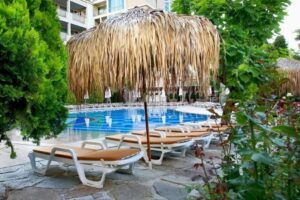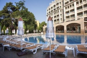 Hotel Alba se nachází v srdci letoviska Slunečné pobřeží, přímo na hlavní promenádě a pouhých 50 metrů od pláže. Obklopený svěžími zahradami, nabízí hostům dva venkovní bazény, vířivku, dětský bazén, dětský aquapark a sluneční terasu zdarma. Blízké atrakce zahrnují pláž Cacao a akvapark na Slunečném pobřeží, kam se dostanete za 15 až 20 minut chůze. Letiště Burgas je vzdálené 30 km a letovisko Sveti Vlas je pouhý 1 km od hotelu.