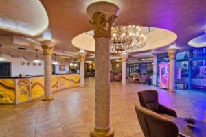 Vybavení hotelu zahrnuje vstupní halu s recepcí, směnárnu a bezplatné Wi-Fi připojení v hale. Hosté mohou využít hotelovou restauraci, bar, pool bar a kavárnu. Pro relaxaci a zábavu jsou k dispozici dva velké bazény, z nichž jeden je vybaven miniaquaparkem se skluzavkami. V hotelu se nachází také internetová kavárna, obchody se suvenýry a kadeřnictví.