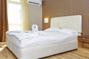 Ubytování nabízí dvoulůžkové pokoje s možností dvou přistýlek, vybavené vlastním sociálním zařízením, telefonem, televizí se satelitním příjmem a minibarem. Rodinné pokoje mají dvě samostatné ložnice a rozkládací gauč v obývací části. Všechny pokoje mají balkon se stolkem a židlemi, a za příplatek je možné zajistit klimatizaci.