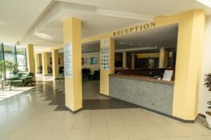 Svými 130 pokoji v 12 patrové budově s panoramatickým výhledem na moře nabízí moderní hotel vzdušnou vstupní halu s recepcí, směnárnou, trezory (za poplatek), lobby bar, výtah, hlavní restauraci, internetovou kavárnu (za poplatek), minimarket, televizní místnost, kadeřnictví, velký venkovní bazén s oddělenou dětskou částí, bar u bazénu, opalovací terasu (lehátka a slunečníky za poplatek) a parkoviště.