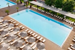 Hotel má přístup k veřejné pláži s jemným pískem, která je od hotelu oddělena promenádou. Pláž nabízí pozvolný vstup do moře, ačkoli za používání lehátek a slunečníků na pláži je účtován poplatek. K dispozici jsou také sprchy, WC a plážové osušky za vratnou zálohu.