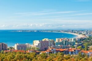 Slunečné pobřeží se rozkládá podél nádherného pobřeží Černého moře v Bulharsku. Toto přímořské letovisko je součástí větší obce Nesebar, která se nachází v provincii Burgas. Jeho geografická poloha je charakteristická mírně svažitým terénem, který přechází do písečné pláže, táhnoucí se kilometry podél Černého moře. Region se pyšní mírným přímořským klimatem s teplými léty a mírnými zimami, což z něj činí oblíbený cíl plážových turistů. Okolní krajina je bohatá na svěží zeleň a lesy, poskytující osvěžující kontrast ke slunečnému pobřeží. Jedním z významných geografických prvků v okolí je nedaleké starobylé město Nesebar, které je spojeno se Slunečným pobřežím úzkou šíjí. Toto místo zapsané na seznamu světového dědictví UNESCO nabízí pohled do bohaté historie a kultury Bulharska.