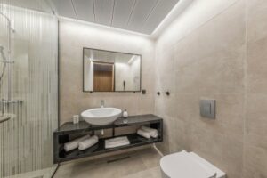 Ubytování v resortu je vhodné pro náročné klienty. Nabízí dvoulůžkové pokoje s výhledem do zahrady a rodinné pokoje až pro čtyři osoby s výhledem na moře. Pokoje jsou vybaveny koupelnou s toaletou, fénem, SAT/TV, telefonem, Wi-Fi, klimatizací, trezorem, minibarem a balkonem nebo terasou. Na vyžádání je k dispozici dětská postýlka zdarma.