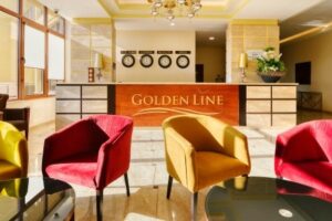 Hotel Golden Line v letovisku Zlaté Písky je ideální volbou pro ty, kteří hledají ubytování blízko centra s pohodlným přístupem k pláži. Centrum letoviska, s restauracemi, bary a obchody, je vzdáleno pouze cca 350 metrů. K pláži, která je od hotelu oddělena místní komunikací, dojdete jen pár kroky.