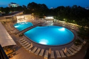 Pro relaxaci a aktivní odpočinek jsou k dispozici sauna, vířivka, venkovní bazén a fitness centrum. Sportovní aktivity zahrnují cvičení ve fitness, stolní tenis, mini fotbal, šipky, volejbal, basketbal a různé vodní sporty na pláži (za poplatek). Pláž Zlatých písků je vzdálena 600 metrů a nabízí pozvolný vstup do moře a různé vodní sporty. Služby na pláži jsou k dispozici za poplatek.